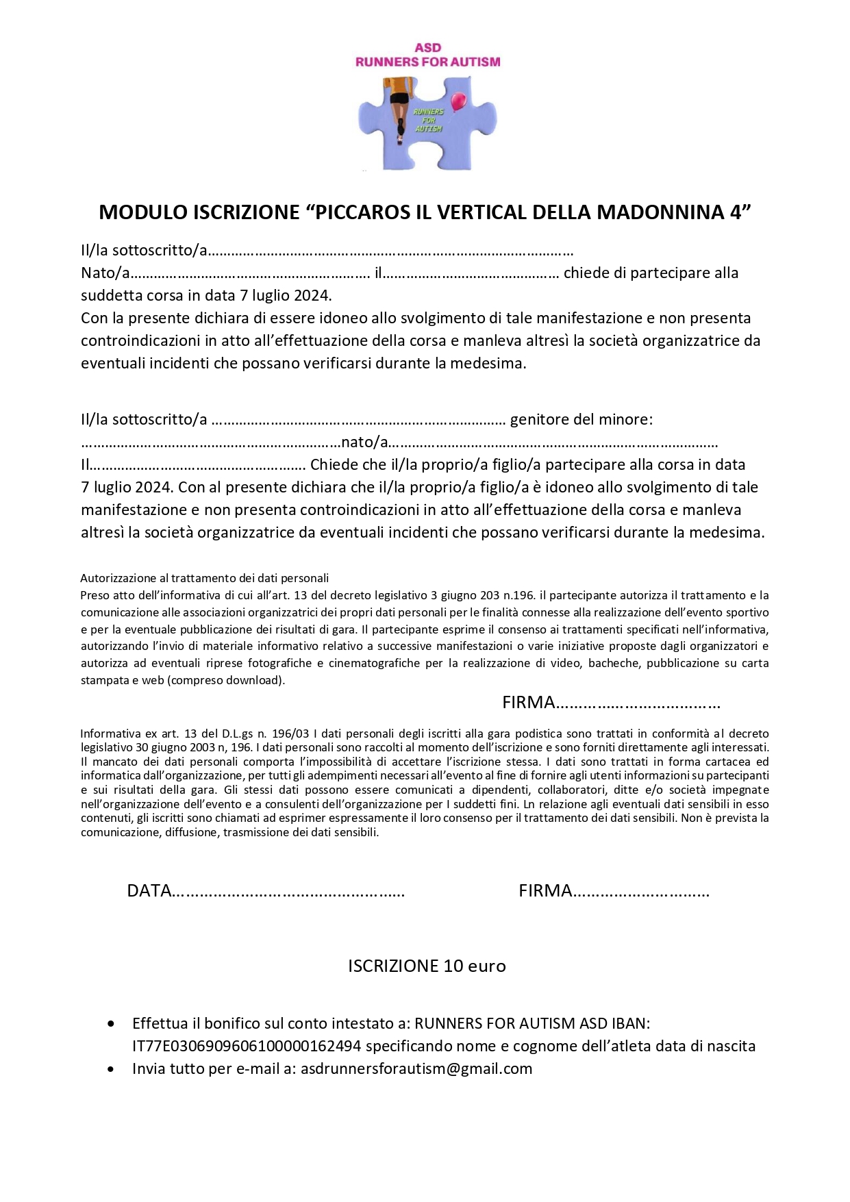 E’ gradita la preiscrizione a asdrunnersforautism@gmail.com